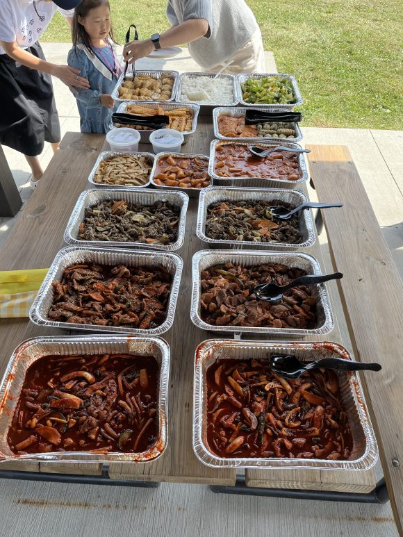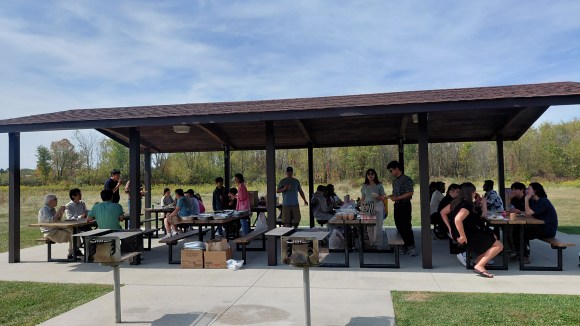 Picnic at the Wood Hollow Metro Park in Sep 20, 2025; (Left to right) Sarath, Jarir, Chris, Bipendra, Lily, Shahba, Stella, Vikram, Bharath, Mehdi, Jae-Won, (front) Daewoong, and Michael. Their family, friends, and J1’s collaborators were also invited. Korean foods were served upon Korean Thanksgiving Day.